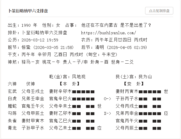 乾(金)宫:风地观 艮(土)宫:艮为山