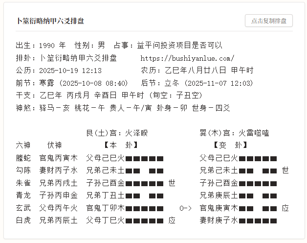 排卦:卜筮衍略纳甲六爻排盘 https://bushiyanlue.com/