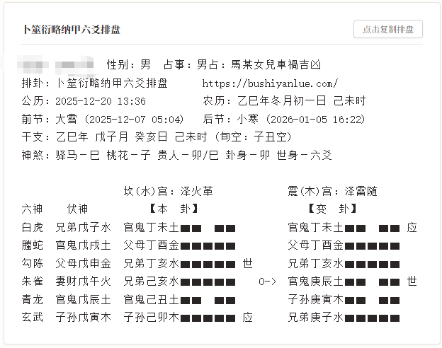 性别:男 占事:男占:馬某女兒車禍吉凶