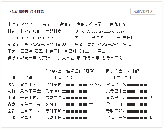 性别:女 占事:朋友的老公病了,吉凶如何?