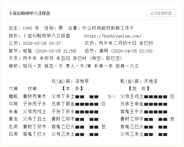 排卦:卜筮衍略纳甲六爻排盘 https://bushiyanlue.com/