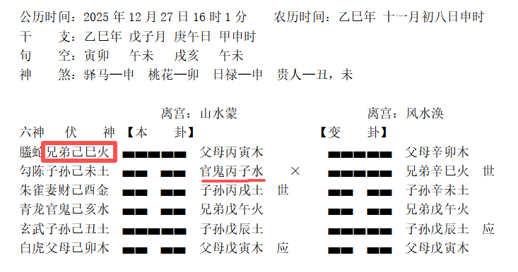 我有个师兄是东北人,受邀请到我们这边住庙。我自己起了一卦,问她能不能成功住庙。 我想了半天,不能确定用神。